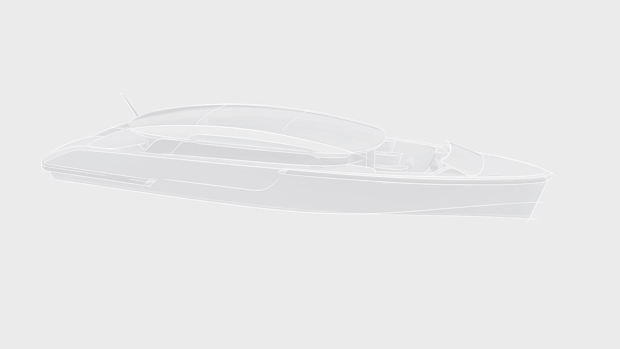The external top that covers the entire command area and the galley has been designed to be able to move forward until it joins the windshield so as to form a single surface to improve aerodynamic performance and comfort during high-speed navigation. It is also very useful for placing the boat in shelter or for being able to use it in adverse weather conditions.