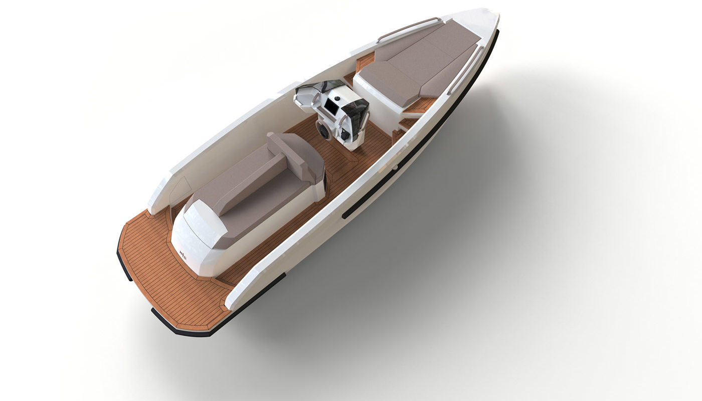 Il layout si adatta perfettamente ai tipi di utilizzo della barca. Presenta infatti una seduta doppia a poppa, su entrambi i lati, ed un prendisole a prua allo stesso livello della falchetta per un contatto diretto col mare.