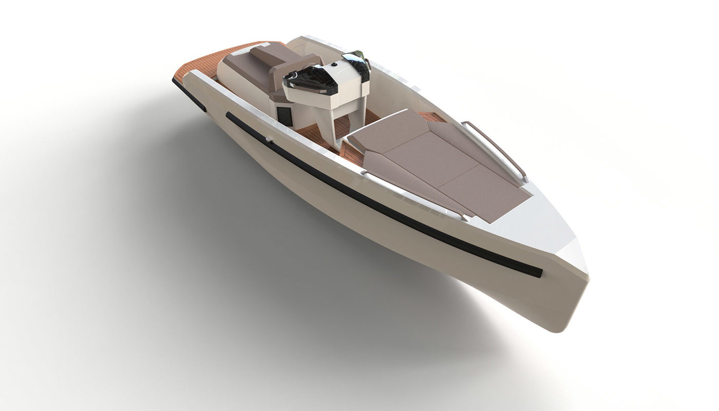 Si tratta di un tender di 25 piedi realizzato interamente in sandwich pre-impregnato di carbonio con anima in nomex ed utilizzabile anche come imbarcazione per uscite giornaliere.