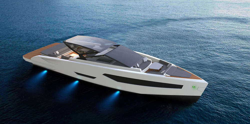 Anche questa unità, come la sorella minore di 58 piedi, presenta un Top esterno progettato per poter traslare in avanti fino a congiungersi con il parabrezza così da formare un’unica superficie per migliorare le performance aerodinamiche ed il comfort durante la navigazione a velocità sostenuta. E’ inoltre molto utile per porre la barca a ricovero o per poterla utilizzare con condizioni meteo avverse.